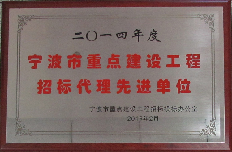 2014年度寧波市重點(diǎn)建設(shè)工程招標(biāo)代理先進(jìn)單位”榮譽(yù)