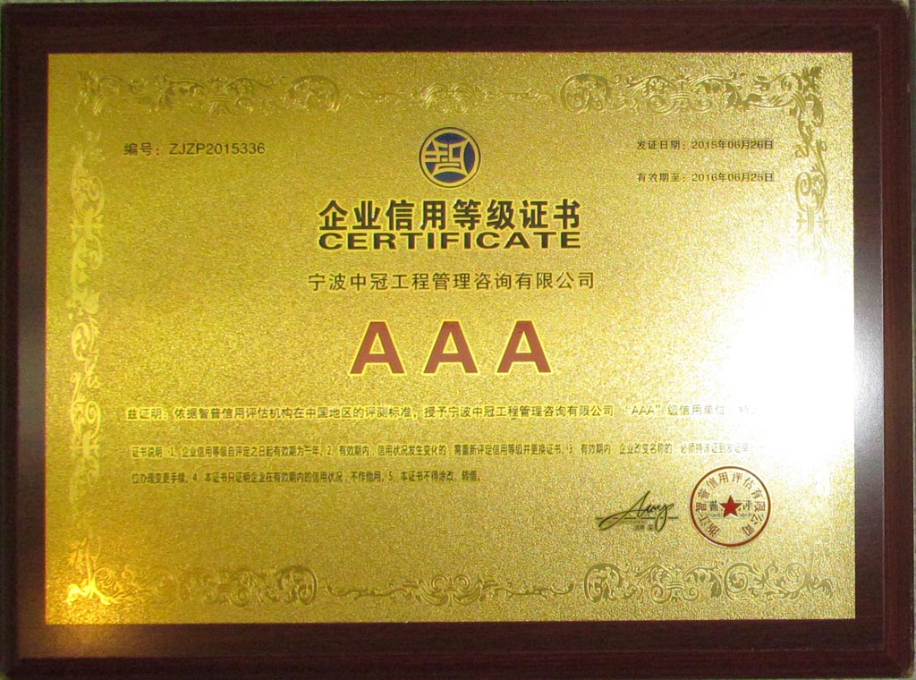 企業(yè)信用等級(jí)證書AAA-中冠榮譽(yù)-中冠咨詢-中冠工程管理咨詢有限公司