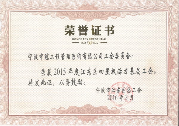 2015年度江東區(qū)四星級活力基層工會-中冠榮譽-中冠咨詢-中冠工程管理咨詢有限公司