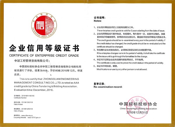 “中國招標(biāo)投標(biāo)協(xié)會(huì)企業(yè)信用評(píng)價(jià)AAA級(jí)信用企業(yè)”榮譽(yù)稱號(hào)-中冠榮譽(yù)-中冠咨詢-中冠工程管理咨詢有限公司