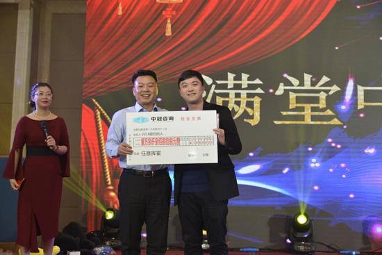 執(zhí)行董事聶偉軍先生親自上臺(tái)抽取中冠鉆石大獎(jiǎng),將滿(mǎn)堂中冠·酒會(huì)推向高潮。最后江北分公司的吳楓成為最后的大贏家,摘得中冠鉆石大獎(jiǎng)。