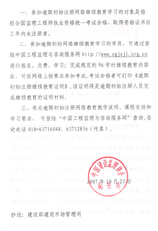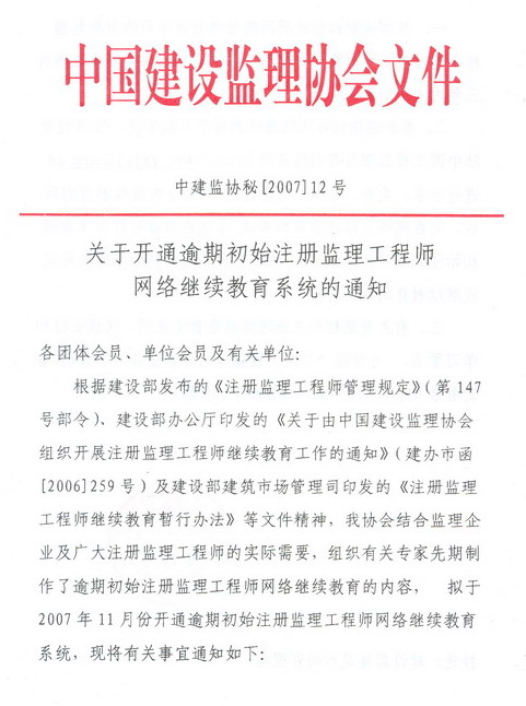 關(guān)于開通逾期初始注冊監(jiān)理工程師網(wǎng)絡(luò)繼續(xù)教育系統(tǒng)的通知