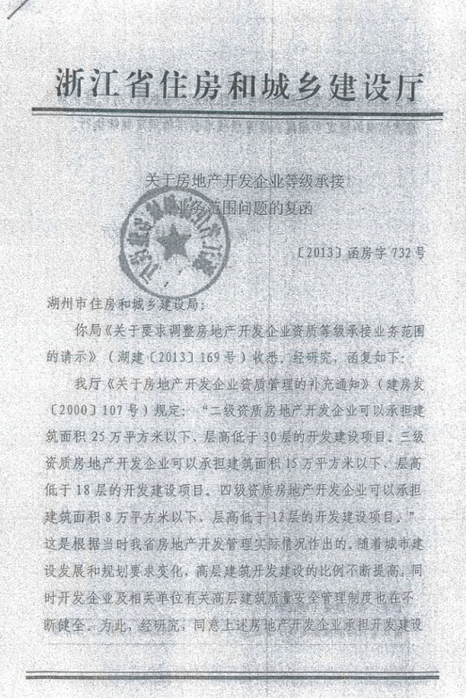 關于房地產開發(fā)企業(yè)等級承接業(yè)務范圍問題的復函
