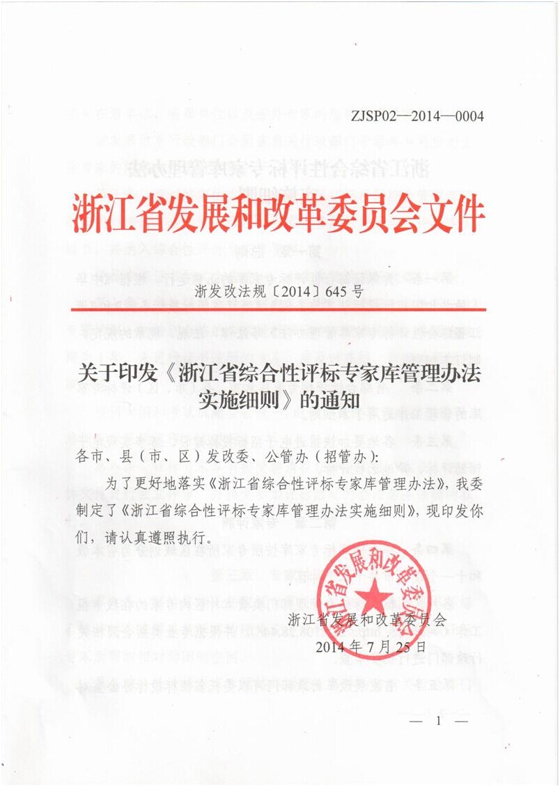 關于印發(fā)《浙江省綜合性評標專家?guī)旃芾磙k法實施細則》的通知 (浙發(fā)改法規(guī)[2014]645號)-行業(yè)新聞-中冠咨詢-中冠工程管理咨詢有限公司