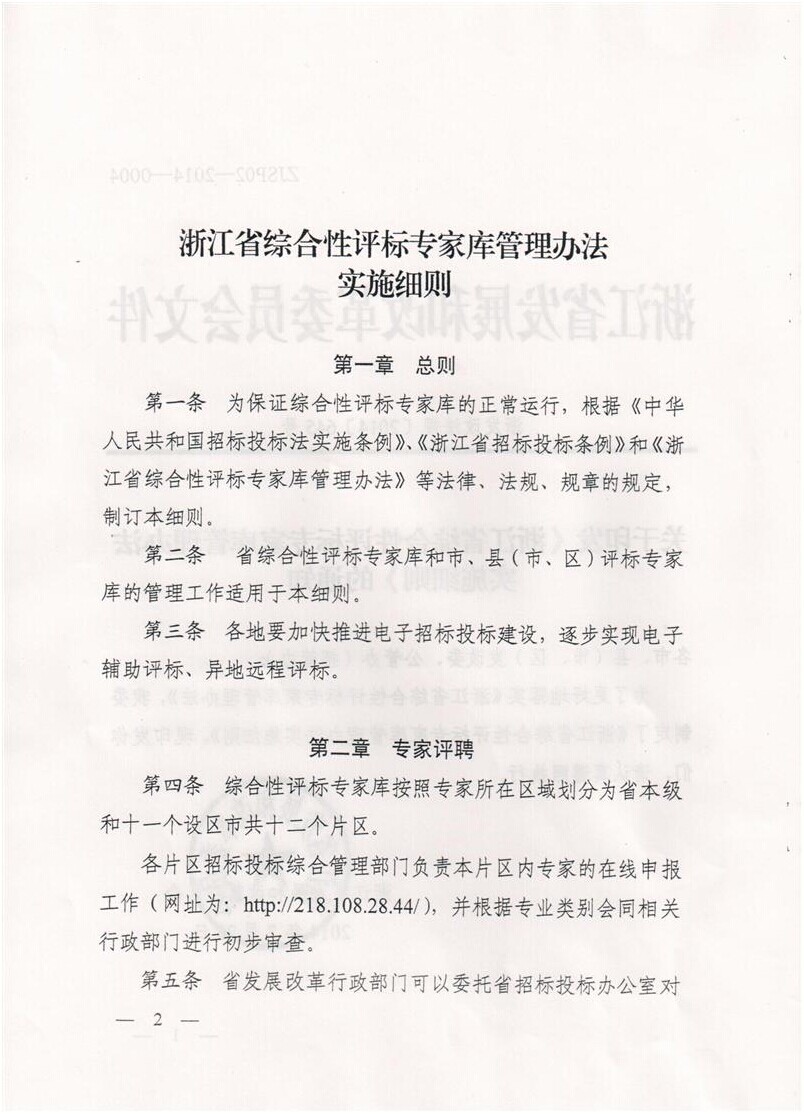 關于印發(fā)《浙江省綜合性評標專家?guī)旃芾磙k法實施細則》的通知 (浙發(fā)改法規(guī)[2014]645號)